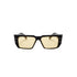 Oversized frame, wide temples, embossed black Balmain logo on side, black finishes, gold-tone anti-glare lenses, 100% UV protection