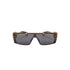 Oversized titanium frame, wide gold-tone and black temples, gold-tone Balmain logo on temples, gray anti-glare lenses, 100% UV protection