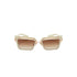 Square frame, thin temples, gold-tone Balmain logo on side, gold-tone finishes, gray anti-glare lenses, 100% UV protection