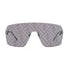 • Fendi First Crystal all-lens shield style, with matte black metal temples. Dark grey lenses with FF logo. F motif on front embellished with crystals. Adjustable nose pads.