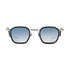 • A unisex graphic shape with rims carved out of a 4mm engraved metal strip. The frame is enlivened by our new geometric bridge and features traditional end pieces. Shiny black acetate. Alloy frame treated with a carbon black layer & Rose gold plated nose pads (c. 5µ layer and jewelry stamp inside the temple). Clear blue gradient