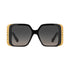 • The LV Moon Square sunglasses are part of a new eyewear family. They feature an oversized shape and are engraved with the 5 Flowers signature, a motif inspired by the Coussin Bag's chain links. The collection also includes a cat-eye, and a rectangular version.