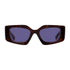Sunglasses with a squared feminine shape. The elegant cat-eyed frame is enhanced by the wide temples that naturally bond with a refined metal version of the Prada metal triangle decorated on the inside by a refined insert featuring the lettering logo.