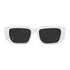 Rectangular acetate sunglasses with a bold, contemporary design. The frame is characterized by thick lenses that highlight the sophisticated enameled tonal rims. The front is paired with geometric temples with extreme volumes that enhance the iconic triangle logo inspired by the accessories of the maison.