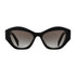 Acetate sunglasses from the Prada Symbole collection. The bold frame is characterized by the geometric design with the feminine cat-eye shape. The frame front has faceted rims combined with three-dimensional temples decorated with an iconographic interpretation of the traditional Prada triangle logo.