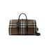 - A structured holdall in Burberry Check with topstitched leather. The design features a leather-wrapped padlock and logo-embossed luggage tag.