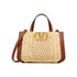 • Valentino Garavani VLogo Signature small crochet handbag in synthetic raffia with leather trim and VLogo Signature element on the front.
