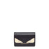 Wallet on chain in black calfskin, with metal studs and leather and fur inlay that recalls the iconic Karlito. The interior is a wallet with gusseted compartments, flat pockets and six card slots. Palladium metalware and detachable chain shoulder strap. Perfect for carrying across the body or as a clutch.