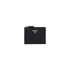 This Saffiano leather wallet with enameled metal triangle logo is sleek and elegant. The accessory with clean lines has a zipper coin compartment, bill compartment, and card slots.