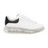White smooth calf leather lace-up sneaker featuring a transparent oversized sole and black leather heel detail. The sneaker features large flat laces and is finished with an Alexander McQueen signature on tongue and heel counter. Oversized rubber sole with signature stamp design. The sneakers come with an additional lace set.