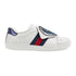 The '70s inspired Ace sneaker is reinvented with removable and interchangeable patches, allowing for multiple combinations for a personalized design. The embroidered pieces can be secured and removed using the metal snaps at the back. Each pair ships with a set of embroideries, which can be replaced with additional variations that are offered separately.