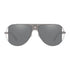 Pilot shape sunglasses with a dark silver tone-frame. Embellished with a central Medusa accent on the bridge and a laser engraved Greca motif on the temples. Features grey silver mirror lenses.
