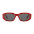 Refreshed in a zesty tone tone, these classic sunglasses evoke the opulent style of a hip-hop icon with a bold low-lens shape and wide temples embellished by a gold-tone heritage Medusa medallion. Featuring a bold combination of a red frame and grey lenses.