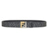 Reversible belt with FF Squared stud buckle. Made of black leather. Back in black and gray jacquard FF fabric. Double-plated metal with Engraved Guilloche finishing.