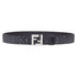 Reversible belt. Iconic FF stud buckle. Made of black leather. Fabric lining with black and gray FF motif. Palladium-finish metalware.