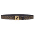 Reversible belt. Iconic FF stud buckle. Made of smooth black leather. Reverse side in fabric with brown and tobacco FF motif. Gold-finish metalware.