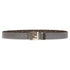 Reversible belt. Iconic FF stud buckle. Made of gray Cuoio Romano leather. Reverse side in fabric with brown and tobacco FF motif. Metal buckle with gold-colored trim and double ruthenium and palladium finish.