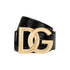 Designed to enhance the waistline of every woman, this new belt comes in patent leather and features the crossover DG logo buckle in light gold-plated metal.