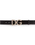 Belt in iguana print calfskin with buckle featuring DG logo with crystals:
