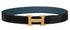 H Guillochee belt buckle & Reversible leather strap 32 mm(noir/bleu de Prusse)