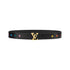 - The LV New Wave belt is a modern imagining of the Louis Vuitton signature. It features raised relief images for an interesting texture to touch, and a brass buckle with gold-color finishing. The LV New Wave captures both the history and art of the House's craftsmen.