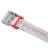 Light grey industrial belt with silver buckle. "Off-White BELT" carved on buckle. Red buckle detail.