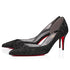 The Iriza asymmetrical pump demonstrates the expertise of the Maison and features classic tapered lines for a timeless urban elegance. It is set on a 70 mm heel and its black sparkling leather upper features a sophisticated pointed toe with delicate finishes and the Maison Christian Louboutin signature low cut.