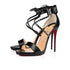 The sculptural Choca Lux sandals are the utmost in elegance and femininity. Set on 120mm of slender stiletto heel, the espadrilles have a subtle platform and are crafted in black kidskin. Silver signature studs embellish the fine tonal patent leather cross straps that curve around the ankle and end with a large covered buckle to complete the cutting-edge look.