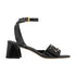 The Shake sandal is a modern design in high-shine patent calf leather. It has a wide front strap with a wrapover detail and a tonal LV accessory, as well as a slender ankle strap, which fastens with a tiny, square buckle. This model comes on a low block heel with a graphic, V-shaped cutout.