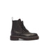 The Leather Lace Up Ankle Boots are combat boots made from black pebbled-grain calf leather with a whipstitch-inspired waxed lace-up front and contrast topstitching on the welt. Lug soles. Signature logo pull tab. Side zip closure at inner ankle. Made in Italy.
