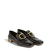 Classic elegance meets contemporary style with this refined loafer with collapsable back and an over sized Gancini ornament in antiqued brass finish.