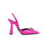Effortlessly elegant, these slingbacks are crafted from smooth satin. The sleek pointed toe silhouette is adorned with a fully crystal-encrusted Medusa plaque—the iconic décor found on the doors of the brand's first headquarters in Milan.