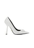 Crafted from glossy naplak leather, these classic pumps elevate looks from the boardroom to dinner dates. The elegant pointed toe silhouette is adorned with a Medusa plaque – the same décor found on the doors of the brand's first headquarters in Milan