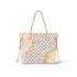 - This Neverfull MM tote bag is made from Damier Azur coated canvas customized with a bold five-color nautical print of ropes and chains, bringing a fresh twist to the classic checkerboard pattern. This versatile bag features side laces that can be cinched for a sleeker silhouette or loosened for a more casual look.