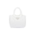 - A soft, simple silhouette defines this small tote bag made of iconic Re-Nylon with an inverted construction. The enameled metal triangle logo embellishes the accessory with a sinuous design.