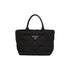 • A geometric motif characterizes this quilted tote bag made of Re-Nylon, a fabric produced from recycled and purified plastic materials collected in the ocean. Accented with nappa leather handles and a removable woven tape shoulder strap, the accessory is decorated on the front with the iconic enameled triangle logo.