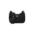 - A triangle patchwork motif characterizes this padded Re-Nylon hobo bag designed to also be worn as a shoulder bag thanks to the adjustable logo-print strap. Embellished on the front with the iconic enameled metal triangle logo, the multifunctional accessory is completed with a detachable nylon zipper pouch that hooks onto the shoulder strap.