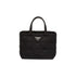 - Prada's iconic triangle logo is reinterpreted in a patchwork motif that characterizes this tote bag with soft lines made of Re-Nylon, a regenerated yarn that is the sustainable evolution of an industrial fabric made iconic by Prada in the '80s. Complete with a mini pouch that attaches to the shoulder strap for a contemporary touch, the accessory is decorated with the iconic enameled metal triangle logo on the front.
