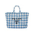 • This maxi tote bag with a soft, deconstructed design is made of raffia-effect yarn, a light, natural material with a summery mood. The embroidered lettering logo decorates the front, while the emblematic triangle in enameled metal embellishes the side.
