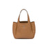 - This soft leather tote introduced for the Fall Winter 2020 collection presents a new interpretation of the triangle logo, traced by stitching with the Prada metal lettering logo illuminating its center. The reverse stitching emphasizes the soft, rounded silhouette that comes with a double leather handle and magnetic button closure. The nappa interior has three compartments.