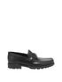 This classic moccasin has an urban feel with a stitched vamp and Gancini bit in graphite finish. The thick rubber sole and the lug bottom add a metropolitan appeal. A technique exclusive of luxury shoemakers, the ‘Tubular’ process ensure exceptional softness and lightness. It involves the manual stitching of the upper for a refined finish, the way only Ferragamo knows how.