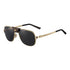 - Santos de Cartier sunglasses in smooth champagne golden-finish metal, smooth champagne golden-finish screws, pilot shape, black calfskin bridge, gray polarized lenses with golden flash, class 3 solar protection. Dimensions: lenses 60 mm, bridge 16 mm, temples 135 mm.