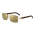 - Signature C de Cartier sunglasses in brown wood with a smooth golden finish, rectangular shape and gray lenses. Dimensions: 57 mm lenses, 17 mm bridge, 140 mm temples.