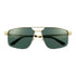 - Santos de Cartier sunglasses, half-rimmed metal, smooth and brushed golden finish, green lenses. Dimensions: 2.3” lenses, 0.6” bridge, 5.5” temples.