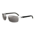 - Marbled black horn sunglasses with a smooth platinum finish, rectangular shape, gray lenses with a silver-toned flash, protection class 3, flex hinges. Dimensions: 60 mm lenses, 18 mm bridge, 140 mm temples.