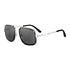 - Santos de Cartier sunglasses in smooth and brushed platinum-finish metal, rectangular shape and gray lenses. Dimensions: lenses 58 mm, bridge 17 mm, temples 140 mm.