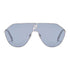 Oversized FF Match shield sunglasses in palladium-colored metal. FF logo cut out on the lens. Adjustable nose pads and light gray acetate tips. Blue lenses.