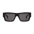 Signature rectangular glasses. Made of black acetate. Frame edge embellished with a tapering laser-cut line. Temples with embossed Fendi logo and decorated with gold-finish metal trim with laser-cut FF. Gray lenses set back in the frame.