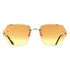 Cartier Exception sunglasses geometric metal frame Shiny Gold with gold temple and graded dark red and orange with a golden flash lens.