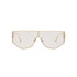 Presented at the Spring/Summer 22 Fashion Show, these metal, geometric shaped shield glasses feature a multicolor mirrored single lens and gold-coloured metal temples with Fendi Brush lettering: a stylized version of the Fendi logo, hand-drawn by the famous fashion illustrator Antonio Lopez in the eighties as an exercise in typographic style.